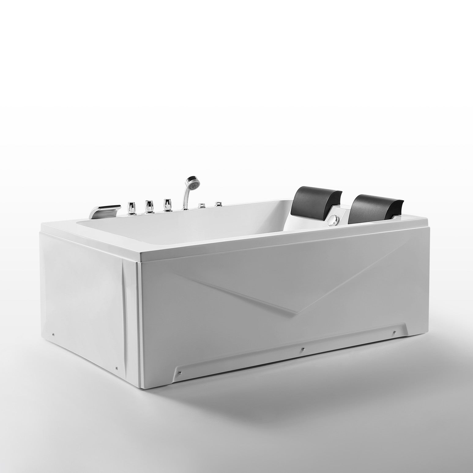 Whirlpool tub complete 8 water jets, 2 jets in lumbar region, 4 jets in body region, 2 jets in foot region, the 0.75 HP water pump provides an ample power for the jet system, surround, and soothe the entire bod, while the UL Certified Motor ensures durability.