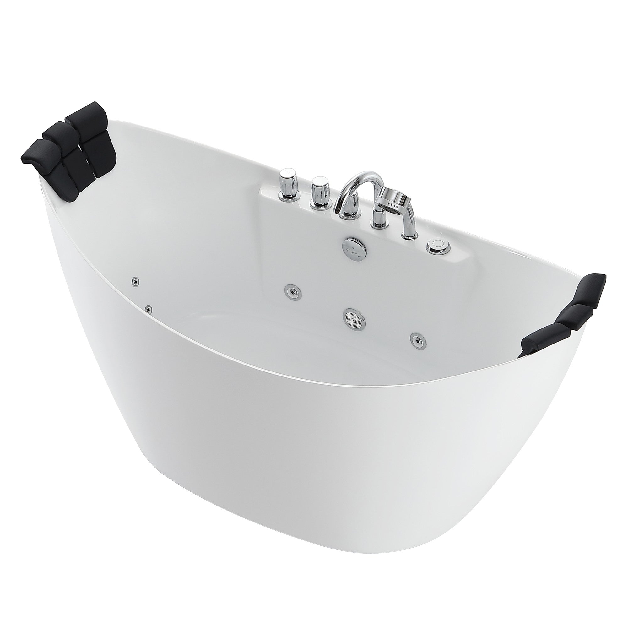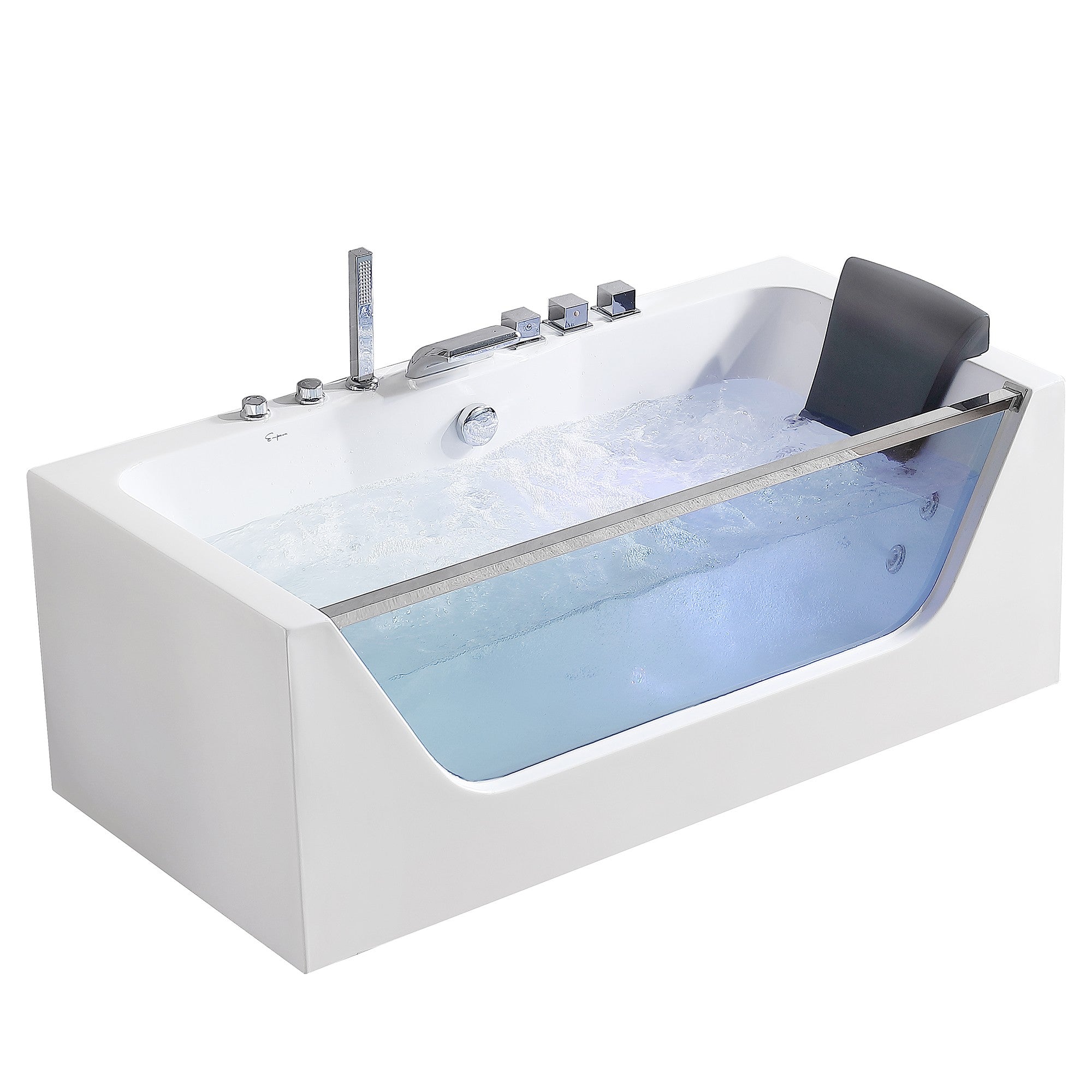 Whirlpool tub complete 8-water jets, 2-jets in lumbar region, 4-jets in body region, jets in foot region, the 0.75 HP water pump provides an ample power for the jet system, surround and soothe the entire body.
