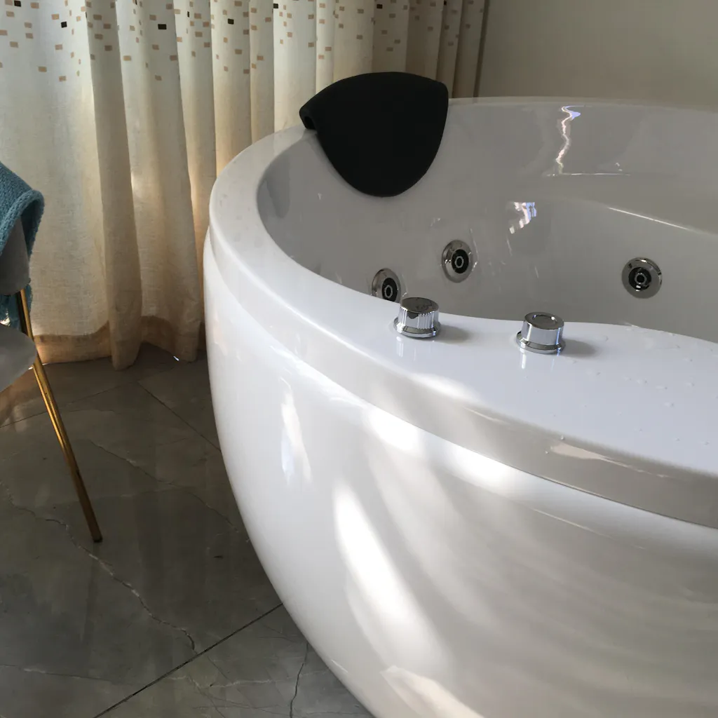 The maintenance of this tub is exceptionally convenient, which includes a waterproof pillow that eliminates the potential breeding of bacteria and alleviates the hassle of drying, an anti-flow drain that prevents water spillage on the floor, bidding farewell to bathroom mess, and a 100% anti-mildew acrylic material that obviates the need for daily washing or cracking maintenance. This tub epitomizes ease of use and care - qualities befitting an exemplary bathtub.